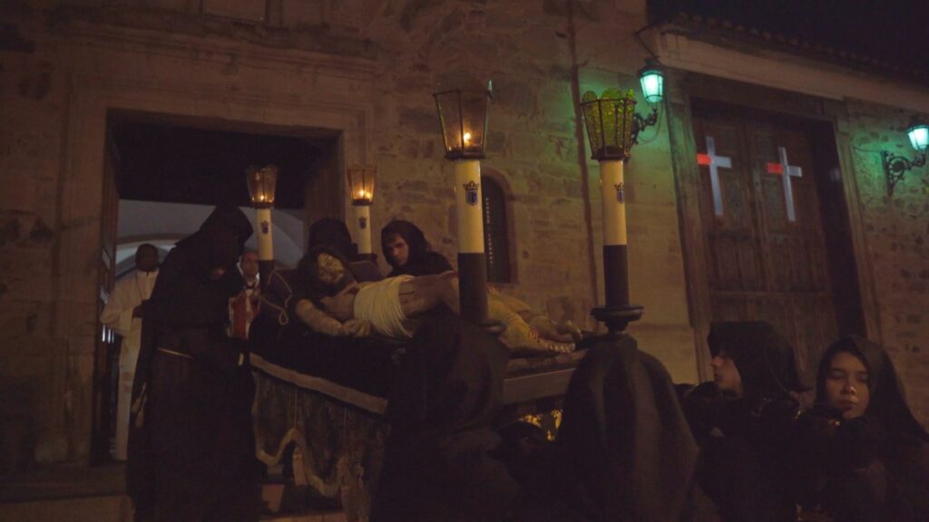 En la madrugada, la Vera Cruz recorría la distancia desde su capilla hasta San Esteban con el Cristo Yacente articulado para proceder a su clavamiento en un silencio de la noche solo roto por los tambores ‘sordos’, las matracas y carracas y el canto del ‘Pueblo Mío’.