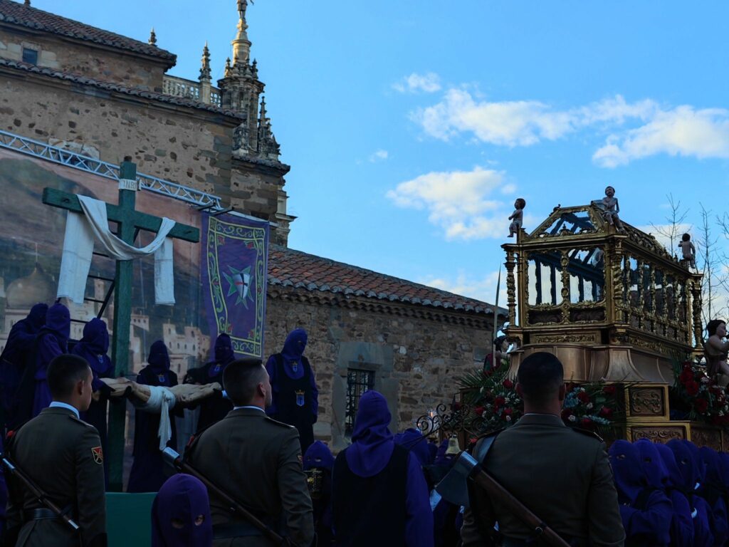 El Jueves Santo seguía luciendo el sol para que el Pregón a Caballo de la Cofradía del Bendito Cristo de los Afligidos pudiera recorrer Astorga convocando al Sermón de las Siete Palabras, y a la procesión del día siguiente, este año con texto de Andrés Martínez Oria. La Vera Cruz recuperaba este 2026 la Procesión de los Pasos, conocida como Vil Populacho por el canto de los Niños y Niñas de Sión, demostrando que en nuestra ciudad existe relevo generacional y hay mucha sangre nueva e implicada en la Semana Santa.