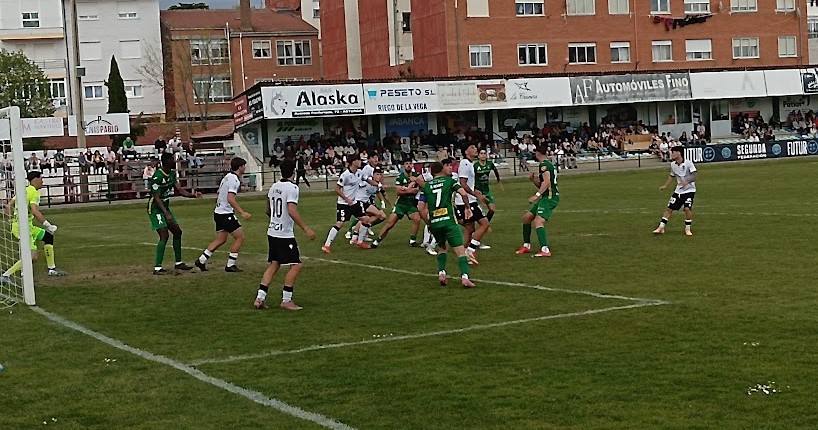 Pero a pesar de tener mucho el balón, su producción ofensiva era nula. El Astorga, con mucha menos creación, aportaba el poco peligro que se generaba en las áreas. Dos descuidos de una defensa burgalesa muy blanda estuvieron a punto de reportar sendos goles que no fueron tales porque los delanteros del Astorga no los embocaron. En el 23 llegó la ocasión más nítida y elaborada: Adri ganó la línea de fondo y adivinó a Sergio que llegaba con todo por el palo contrario, le puso el balón, y con el portero batido, se marchó rozando el poste.