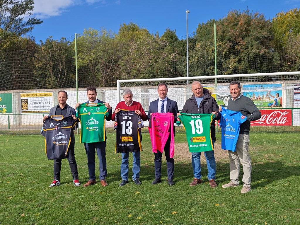Y es que el Atlético Astorga presentaba oficialmente este jueves, arropado por sus patrocinadores, las nuevas equipaciones de esta temporada. El presidente del club, Manuel Ortiz, agradeció a los patrocinadores su esfuerzo ya que este año, para adaptarse a la normativa de la 2º RFEF, ha habido que cambiar por completo las dos equipaciones tanto de jugadores como de porteros.