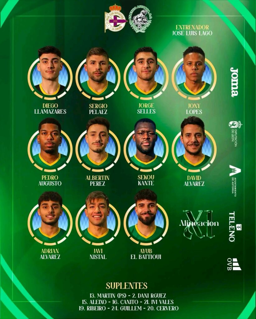 El equipo saldría con Llamazares, Sergio Peláez, Selles, Jony, Pedro Augusto, Albertín, Kanté, David Álvarez, Adrián Álvarez, Javi Nistal y Ayub como titulares quedando en el banquillo, además del guardameta Martín, los jugadores Dani Rodríguez, Aleixo, Canito, Ivi Vales, Ribeiro, Guillem y Cervero. La marea verde apoyaba a los suyos desde la grada ya que se organizó un viaje para los aficionados desplazados desde Astorga para dar aliento al equipo en este complicado encuentro.