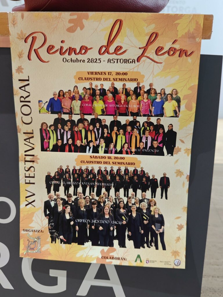 Es una de las citas musicales obligadas y más esperadas del mes de octubre. El Festival Coral ‘Reino de León’ de Astorga cumple este fin de semana quince ediciones de música, tradición y hermanamiento coral. El concejal de Cultura, Tomás Valle, presentaba este martes esta propuesta que organiza la Coral Ciudad de Astorga “Excelsior” desde el año 2010.