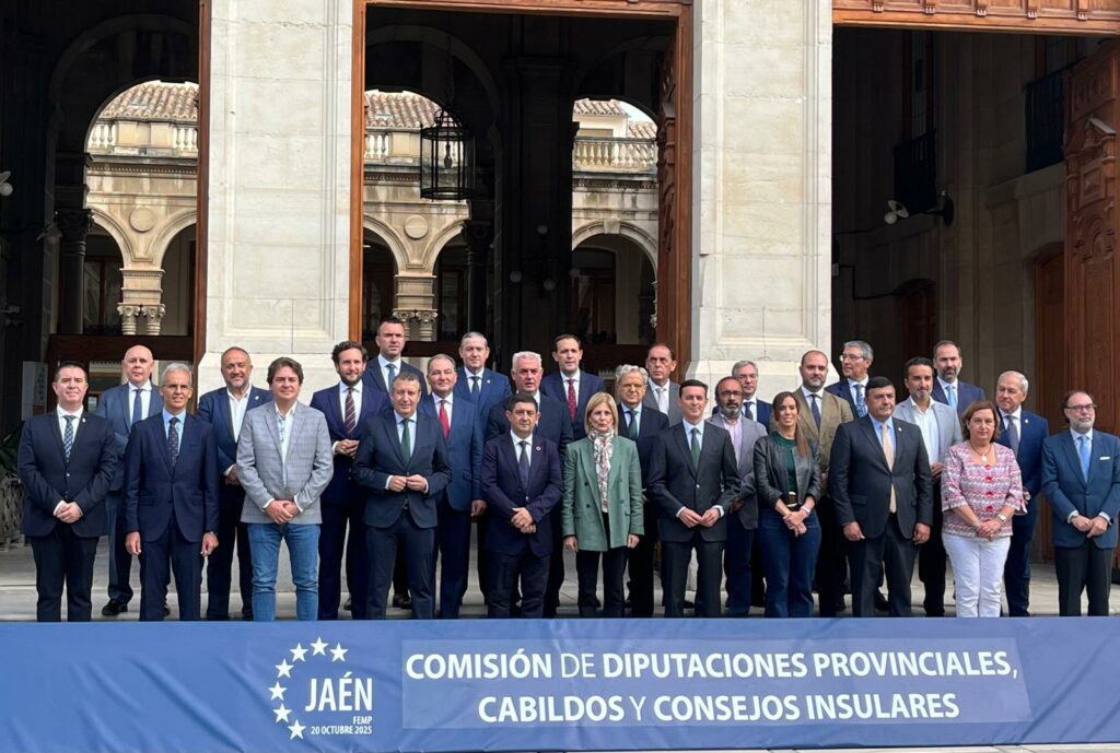 El presidente de la Diputación de León, Gerardo Álvarez Courel, ha participado este lunes en Jaén en la Comisión de Diputaciones de la Federación Española de Municipios y Provincias (FEMP), un encuentro que ha reunido a los presidentes y presidentas de las diferentes administraciones del país con el objetivo de analizar asuntos clave en el ámbito local y provincial y en la que se ha reivindicado la importancia de reforzar el papel de las diputaciones ante el reto demográfico, así como dotarlas de una mayor financiación.
