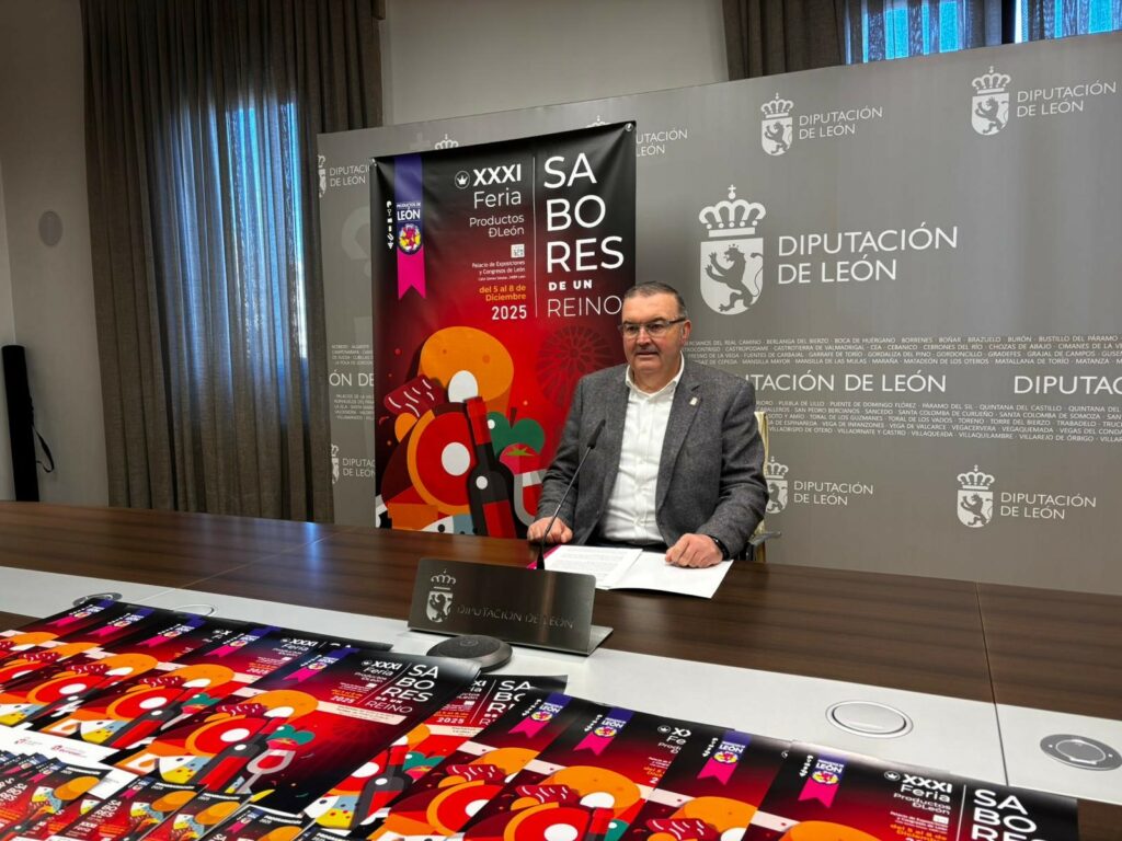 El vicepresidente de la Diputación de León y diputado encargado del área de Productos de León ha sido el encargado de presentar esta mañana los actos que se han organizado desde la institución provincial para celebrar la XXXI edición de la tradicional `Feria de los Productos de León´, que se celebrará los días 5, 6, 7 y 8 de este mes de diciembre e el palacio de Congresos y Exposiciones de la capital leonesa.