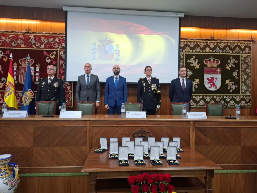 También se entregaron dos condecoraciones a personal ajeno a la Policía Nacional. Una de ellas al General de Brigada, Jefe del Maca y Comandante Militar de la provincia de León, Antonio Mongío, por su estrecha colaboración con distintas unidades policiales. La otra fue concedida al Capitán Jefe de la unidad aérea de la Guardia Civil en Castilla y León, Mario Romero Vicente, en reconocimiento a la coordinación en operaciones conjuntas y apoyo en situaciones de emergencia. El subdelegado del Gobierno destacó que estos reconocimientos son “la expresión de un agradecimiento colectivo a la entrega, la vocación y el trabajo discreto y eficaz de la Policía Nacional”.