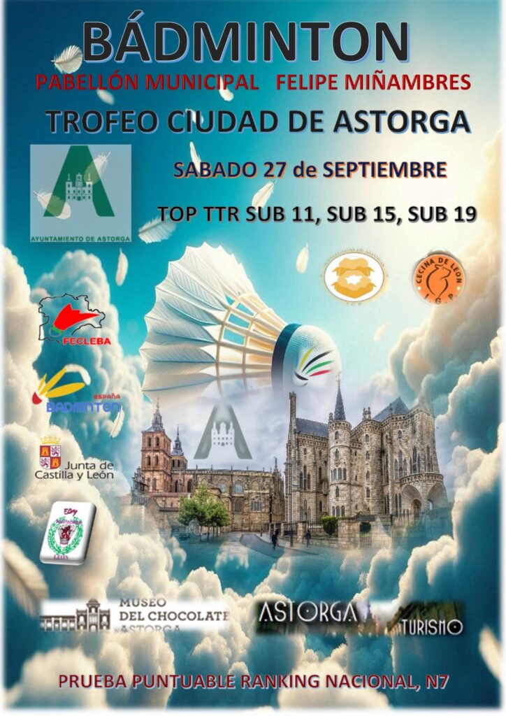 Astorga acoge el próximo sábado, 27 de septiembre, la segunda edición del Trofeo Ciudad de Astorga de bádminton en el que se citarán más de 80 participantes de categorías sub 11, sub 15 y sub 19 de un total de treces clubes de Castilla y León, Cantabria, Madrid, Galicia o Asturias.