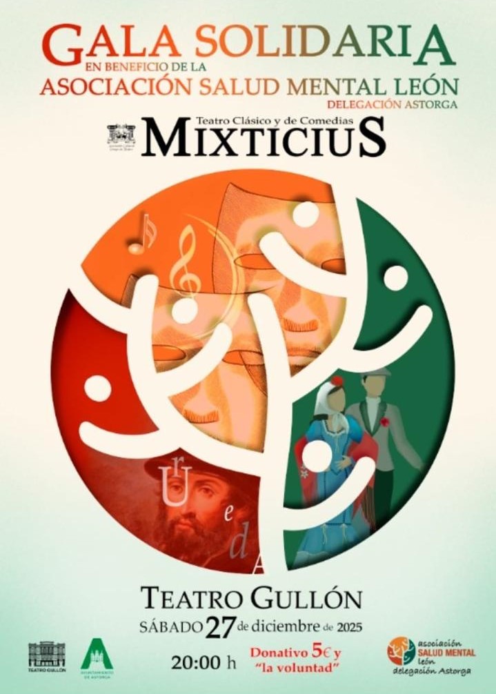 Astorga se vuelca esta Navidad con la Salud Mental. Después de anunciar que la carrera y marcha solidaria navideña será a favor de la delegación de Astorga de la Asociación Salud Mental León, este martes se presentaba otra iniciativa para ese mismo día, sábado 27 de diciembre, que llega de la mano del grupo de teatro local Mixiticius que se subirá a las tablas del Teatro Gullón para no solo recaudar fondos para la delegación astorgana sino para visibilizar la importancia de la salud mental. Las entradas tienen un precio donativo de cinco euros «y la voluntad» y podrán adquirirse tanto en la delegación de Salud Mental de nuestra ciudad, como a través del grupo de teatro como en el Ayuntamiento. También se despacharán en el Teatro Gullón antes del evento que arrancará a las 20 horas.