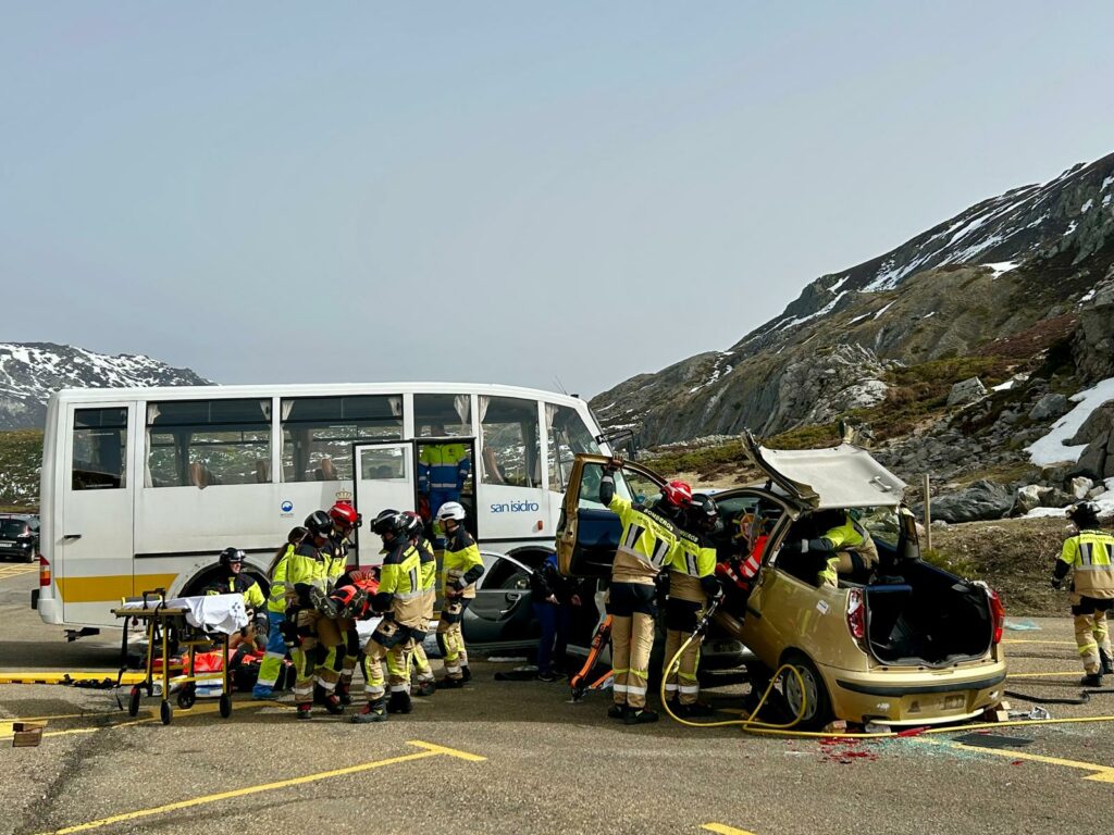 El cuarto ejercicio ha consistido en la simulación de un accidente en pista de un esquiador que ha sufrido un ictus y que ha colisionado con otros cuatro que esperaban el remonte y el quinto se ha centrado en la atención sanitaria y evacuación. Por último, el sexto escenario sobre el que se ha trabajado ha sido el de un accidente de tráfico en el estacionamiento entre un autocar y un turismo, con atrapados y derrame de combustible.