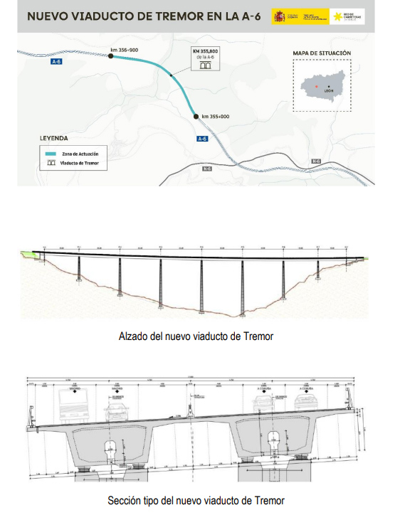 El Ministerio de Transportes y Movilidad Sostenible ha aprobado provisionalmente y someterá a información pública, mediante su próxima publicación en el Boletín Oficial del Estado (BOE), el proyecto de trazado para construir el nuevo viaducto de Tremor en la autovía A-6, a su paso por el término municipal de Torre del Bierzo, en la provincia de León. Se inician así los trámites necesarios para la expropiación de los terrenos que serán necesarios para estas obras.
