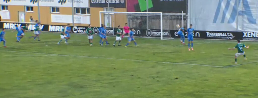 Apenas cinco minutos después, en pleno arreón del Coruxo, llegó la mejor ocasión de los locales hasta ese momento: primero Llamazares despejó un balón envenenado que los defensas astorganos no estuvieron finos en sacar del área hasta que un jugador gallego en la frontal del área «inventó» un tiro fuerte y colocado que escupió la cruceta de la portería astorgana. El entrenador vigués metió cambios para ir a por el partido y aunque el dibujo no cambió en exceso, en el 78, llegó el «regalo» del Atlético Astorga: una falta botada desde en el «pico» del área pegó en Ribeiro que estaba formando la barrera y el balón se desvió lo suficiente para despistar a Llamazares y que subiera el 1-0 al marcador.