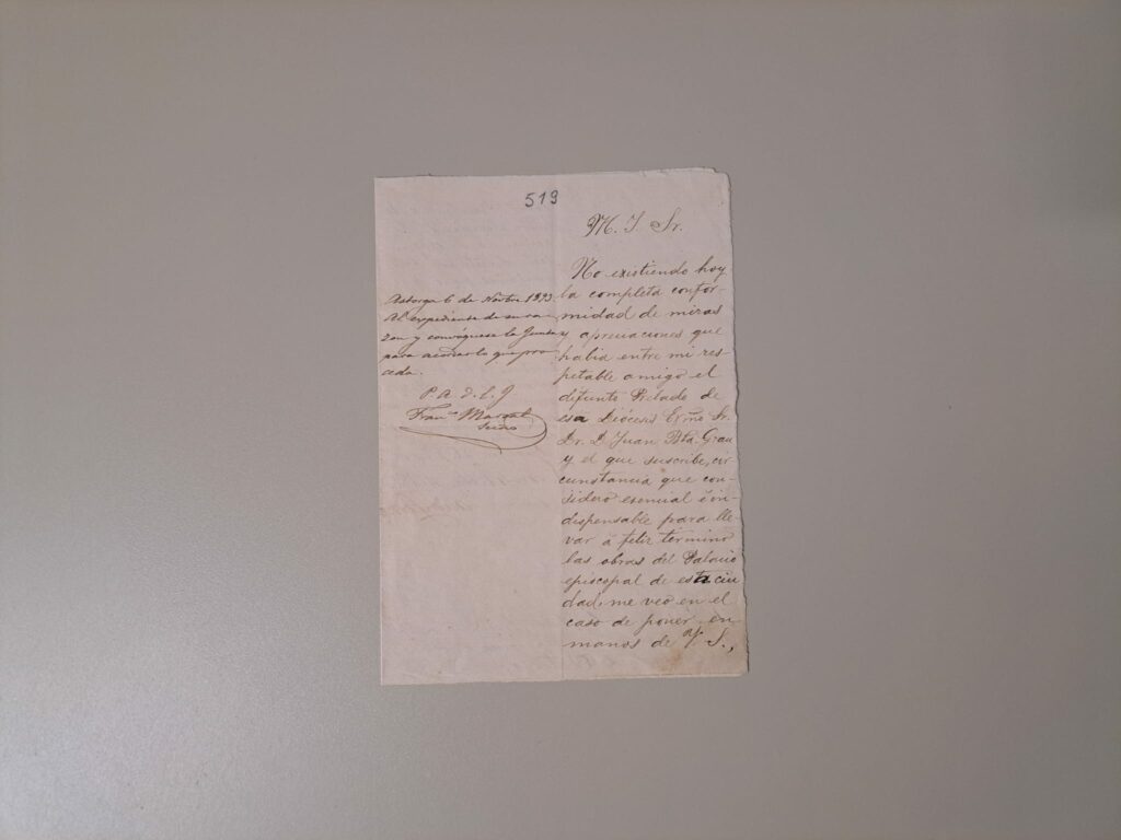A pesar de todo lo que rodeó al proyecto, institucional y administrativamente hablando, la obra astorgana de Gaudí está ligada sin duda al vínculo personal entre el arquitecto y el obispo Grau. La amistad que se fue consolidando con los años, gracias entre otras cosas a los viajes de Gaudí a Astorga, en los que reconoce “el afabilísimo trato recibido…”, tiene su final con el inesperado fallecimiento del prelado en el otoño de 1893. Este hecho supondrá la decisión de Gaudí de no continuar dirigiendo la obra, ya que después de la muerte de su amigo y con la sede episcopal vacante, la Junta Diocesana asume la dirección del proyecto y comienza un breve pero decisivo periodo de disensiones que sumen al arquitecto en la soledad y la incomprensión y que concluyen con la sencilla y esclarecedora carta de renuncia a continuar como arquitecto, enviada por Gaudí desde León el 4 de noviembre de 1893, que se muestra destacada este mes de febrero.
