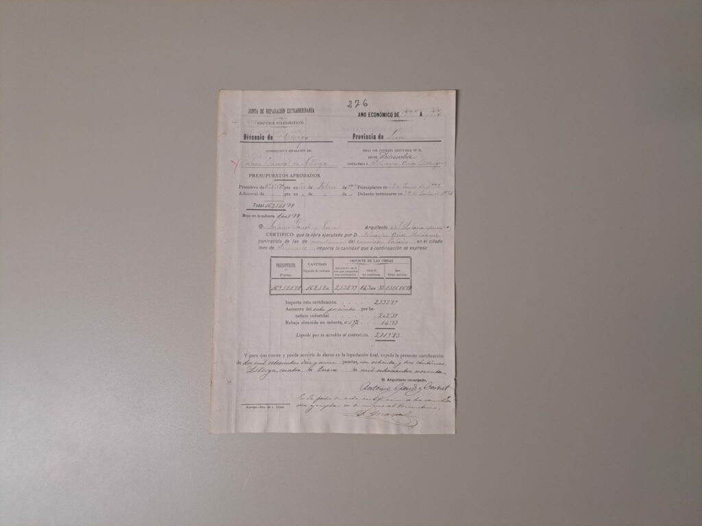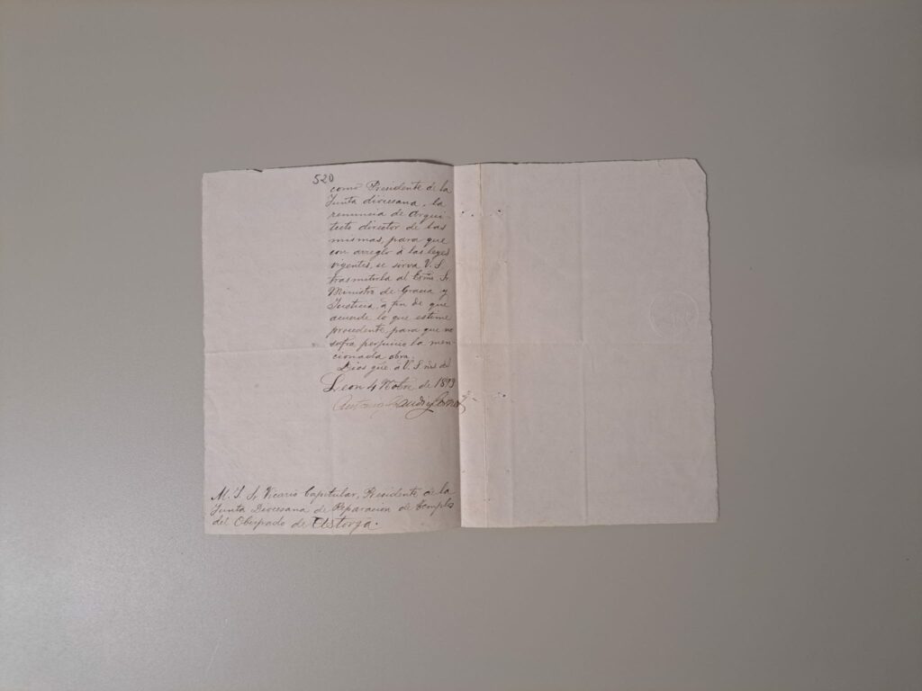 Después de un largo periodo de inactividad hasta casi el abandono y olvido, las obras concluirán 20 años más tarde bajo la dirección de Ricardo García Guereta. Ambos documentos se exponen hasta finales de mes en un lugar destacado de la segunda planta, a partir de marzo serán trasladados a un punto de la planta noble donde interactuarán hasta finales de año con la con la exposición permanente del Museo de los Caminos del Palacio de Gaudí.